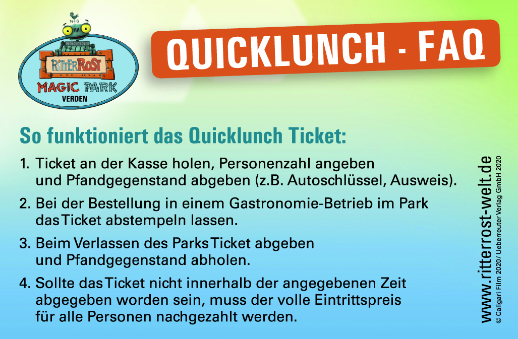- Am Eingang nach dem Quicklunch-Ticket verlangen.