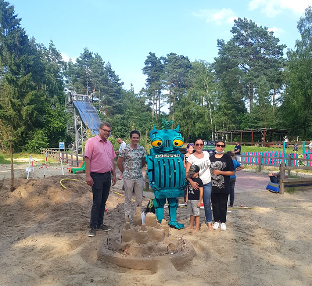 - Ihr bekommt von uns Sand, Schubkarren und Wasser – alles, was ihr für eure Sandburg braucht.