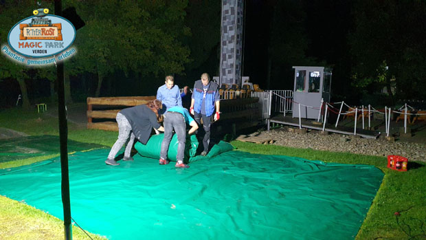 Die tolle Woche mit mega viel Hüpfspaß geht zu Ende und zuletzt muss alles wieder abgebaut werden, über 2 Tonnen Material