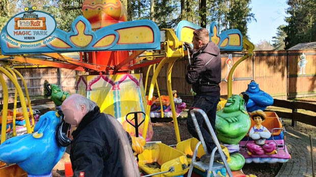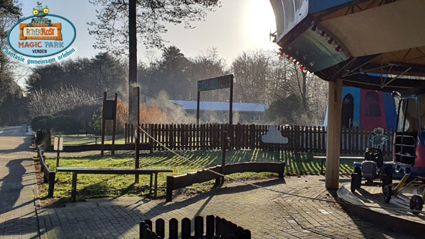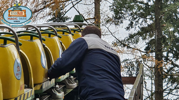 Der Park ist geschlossen und wartet auf die Winteröffnung. In dieser Zeit kommt auch der TÜV zum ersten mal und beginnt
