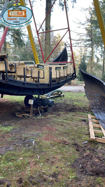 Wegen einer wichtigen Sonderprüfung wird gerade die Schiffschaukel teilweise zerlegt. Geprüft wird die Tragstruktur