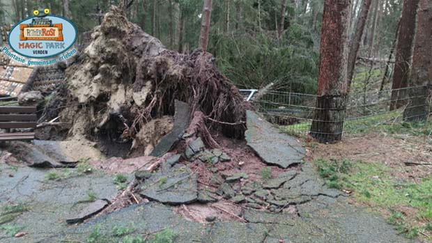 Am Ende dieser Woche haben 3 heftige Stürme in Folge den Park richtig durchgeschüttelt. Bilanz: etwa 40 Bäume sind umgekippt und