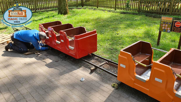 Nach Jahren kehrt endlich der 3. Wagen an der Kindereisenbahn zurück. Auf Grund des Alters waren Ersatzteile für den Antrieb der