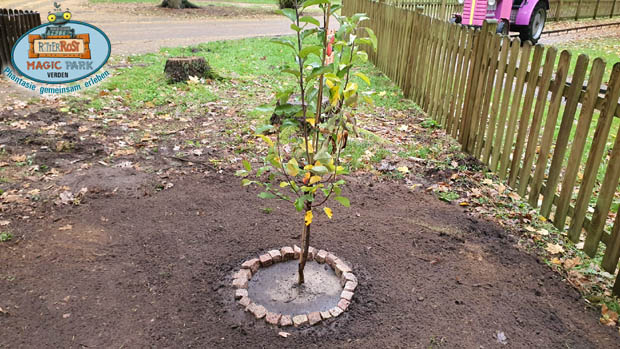 An der Treckerbahn wird es bald richtiges Obst geben... in ein paar Jahren. Ein Apfelbaum wird dort im Frühjahr das erste mal blühen.