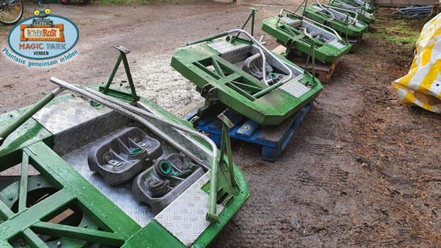 Auch die besonders aufwändige Jahreswartung unserer Fahranlagen stehen jetzt im Mittelpunkt. Ganz oben auf der Liste ist die Achterbahn, weil wir diese zu den Märchennächten Ende Januar schon wieder fahrbereit auf der Schiene haben müssen. Dabei ist dieses Jahr eine Sonderprüfung notwendig, im deren Rahmen ein Teil der Fahrzeuge komplett zerlegt werden muss.