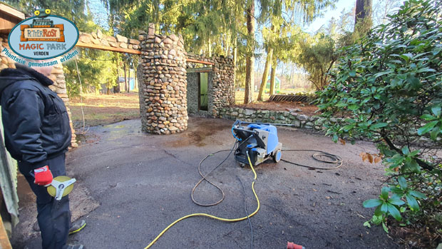 Auch eins unser Projekte für 2022 geht voran. Zunächst muss die Substanz der Bauten gereinigt und untersucht werden, die darin integriert werden sollen. Ihr dürft gespannt sein.