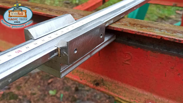 Um die Arbeit zu vereinfachen und unsere Wartung weiter zu verbessern hat unser Mechaniker Simon ein tolles neues Messmittel gebaut. Damit kann die Spurweite sehr leicht und sehr exakt vermessen werden. Dieses muss regelmäßig gemacht werden, um Veränderungen frühzeitig zu erkennen.