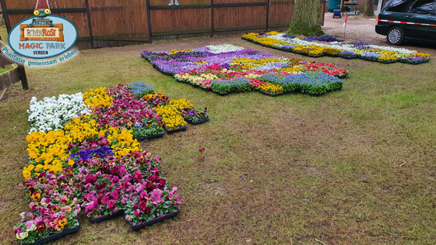 Auch wollen unzählige Pflanzen noch im Park gepflanzt werden. Hier sieht man nur ein Teil der Blütenpracht. Schön bunt!