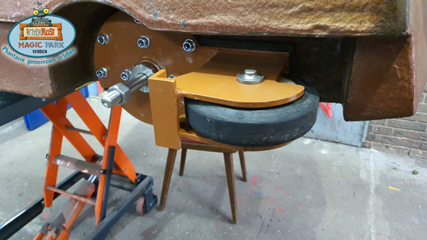 Die neuen Radträger der Wasserbahnboote müssen montiert werden. Zunächst nur an einem Probeboot. Sollten die Testfahrten wie gewünscht verlaufen, und der TÜV dann auch sein finales OK geben, können die anderen Boote auch nach und nach modernisiert werden.