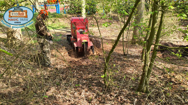 Dazu muss der Bereich insgesamt erstmal aufgeräumt werden. Einige alte Baumstubben müssen noch weg. Somit sind mit den Sturmschäden insgesamt über 100 Baustubben im Park verschwunden.