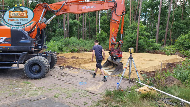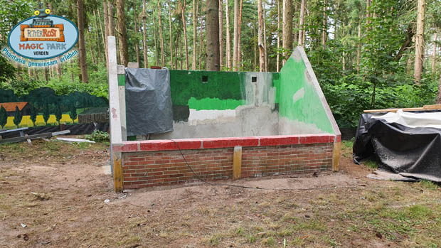 In der Nähe der Verwaltung beginnen Bauarbeiten für eine neue Lagerhalle. Diese ist nötig, da wir die Halle, die zuletzt als Lagerhalle genutzt wurde für die Themenfahrt "Drachen Magic" nutzen werden.