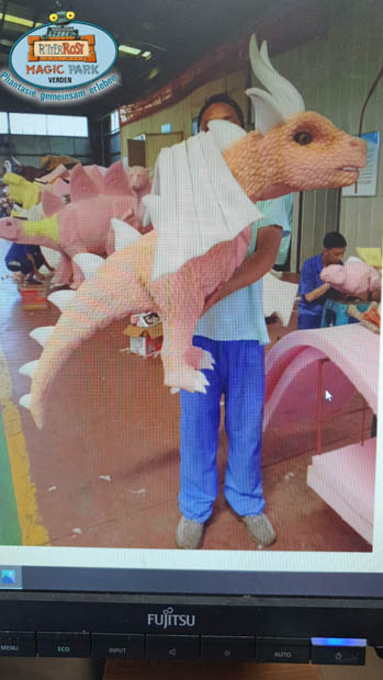 Parallel zu den Bauarbeiten an der Themenfahrt hier im Park werden bei einem Zulieferer in China schon die Drachen für die Anlage gebaut. Hier ein Drachen als riesige Handpuppe im Rohzustand. Sieht schon sehr gut aus. Es werden auf jeden Fall ganz liebe Drachen.