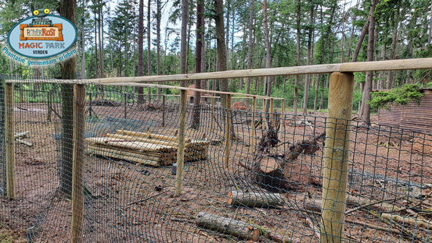 Auch die Zäune am Damwildgehege wurden beim Sturm im Februar erheblich beschädigt. Nun endlich werden sie repariert, sieht doch gleich viel ordentlicher aus.