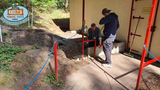 Direkt ans Theater wird ein zusätzlicher Backstage-Bereich angebaut. Dazu muss der Boden aber erst bereitet werden.
